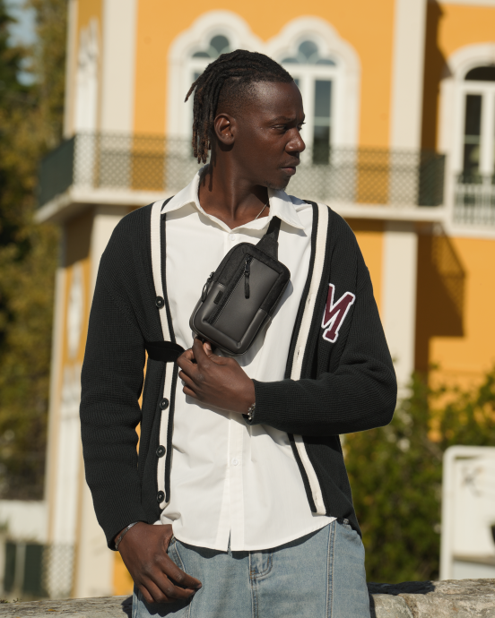 Versatile dual bag, wearable as a crossbody or waist bag.
