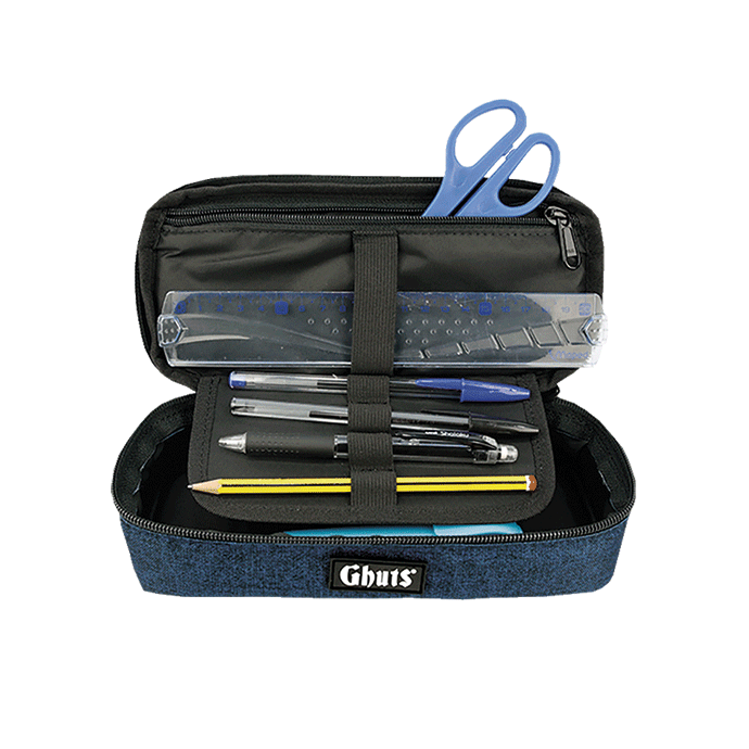 With support for pens and other objects and an interior pocket with a zip fastener.