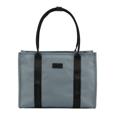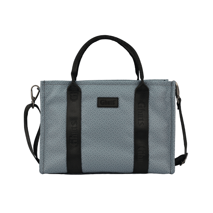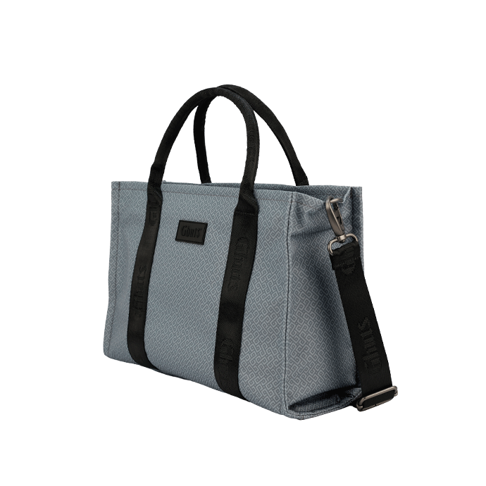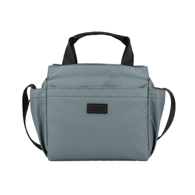 Small, practical, and functional bag, with top handles and a removable crossbody strap made of satin webbing.