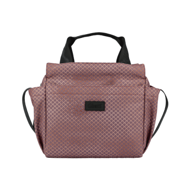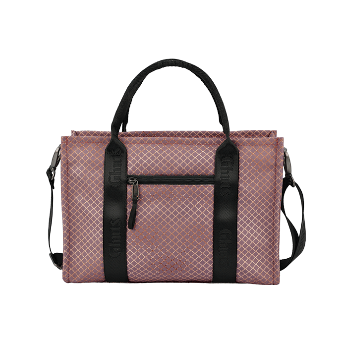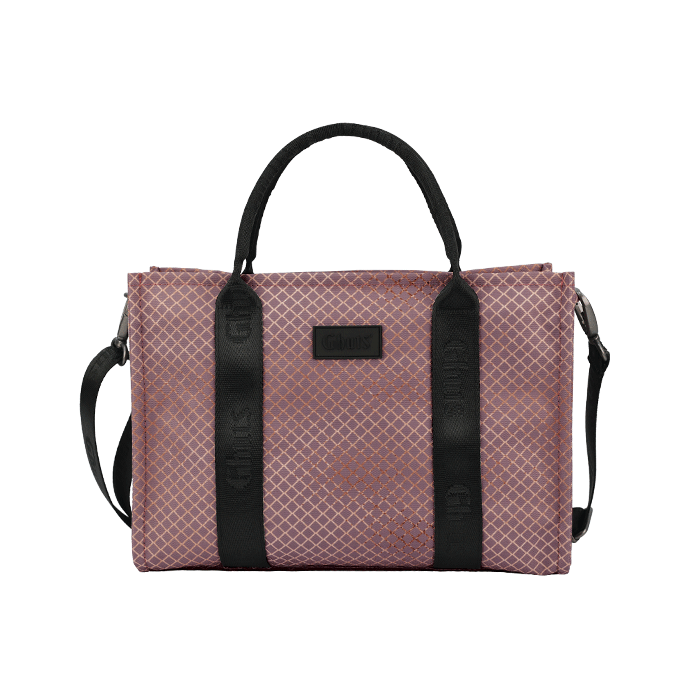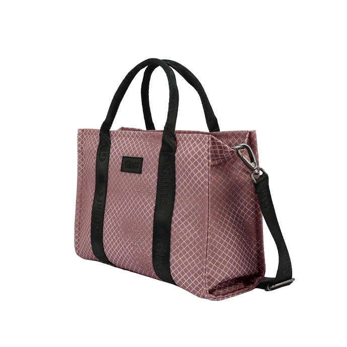 Small, practical, and functional bag, with top handles and a removable crossbody strap made of satin webbing.