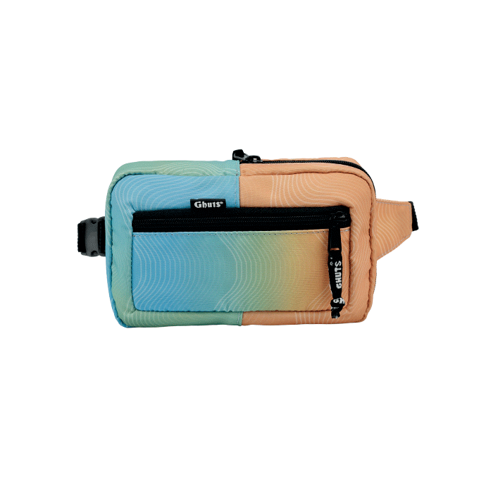 Bolso de bandolera, adaptable a la cintura, con bolsillo exterior con cremallera.