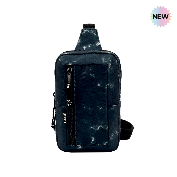 Bolso de bandolera, adaptable a la cintura, con bolsillo exterior con cremallera.