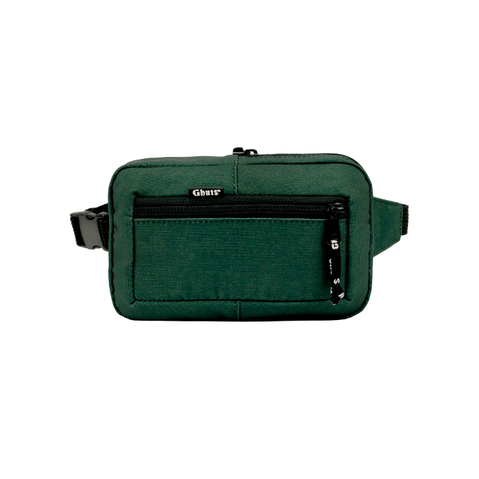 Bolso de bandolera, adaptable a la cintura, con bolsillo exterior con cremallera.