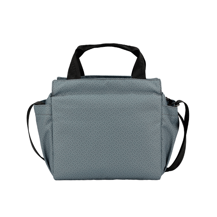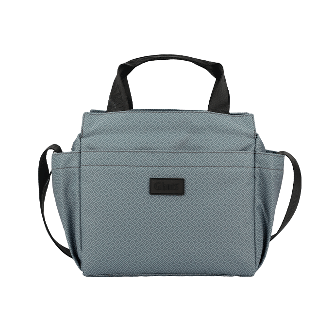 Fiambrera con interior térmico. Asas de mano y correa ajustable de cinta satinada.