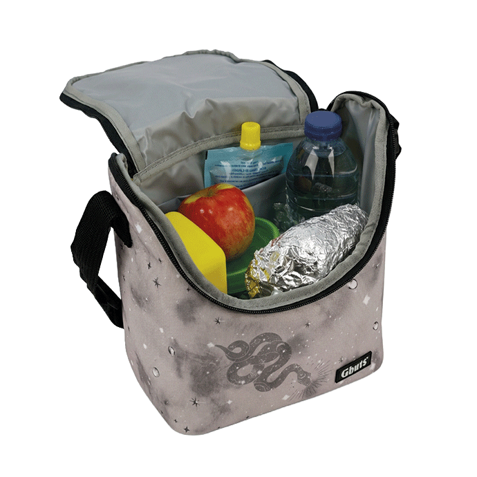 Fiambrera térmica grande, perfecta para acomodar alimentos y botellas.