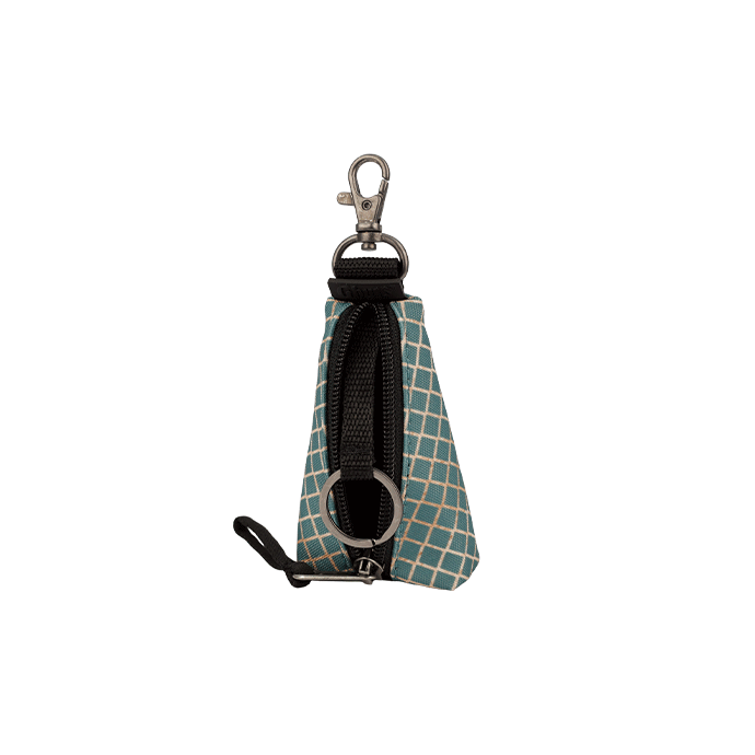 Llavero con mosquetón externo. En el interior, un clip con anilla para sujetar las llaves cómodamente.