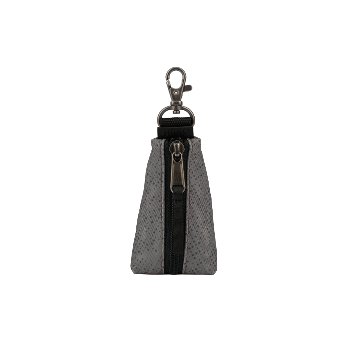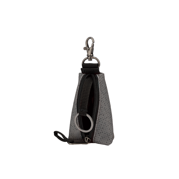 Llavero con mosquetón externo. En el interior, un clip con anilla para sujetar las llaves cómodamente.