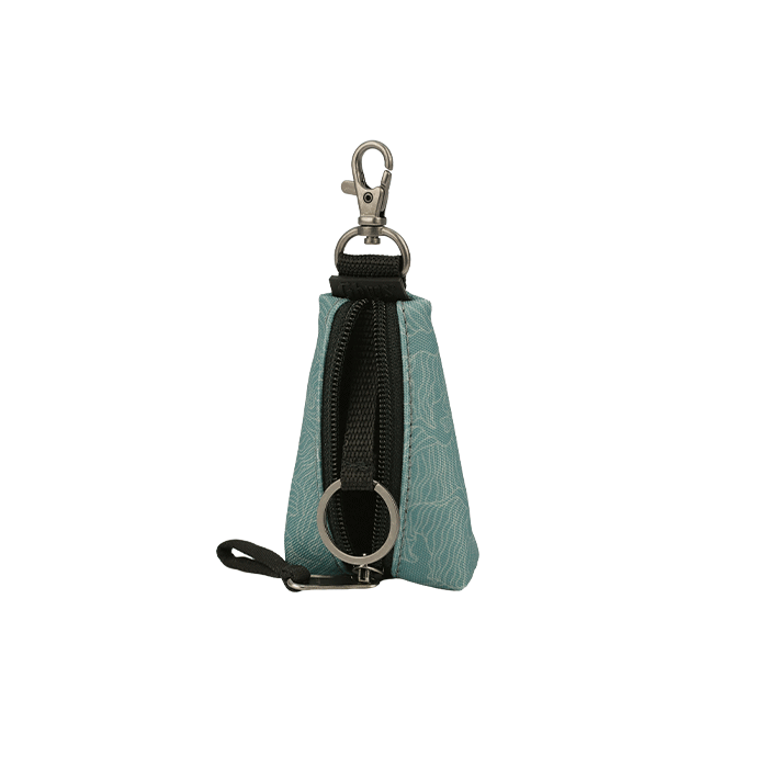 Llavero con mosquetón externo. En el interior, un clip con anilla para sujetar las llaves cómodamente.