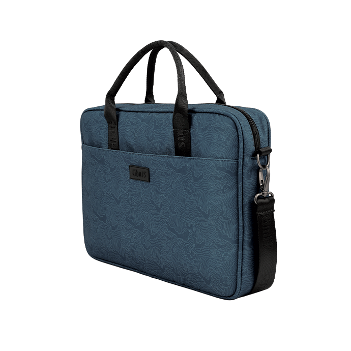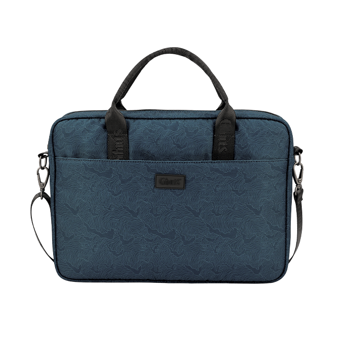 Compartimento para ordenador portátil. Bolsillo frontal con cremallera. Preparada para trolley. Correa extraíble.