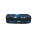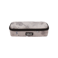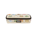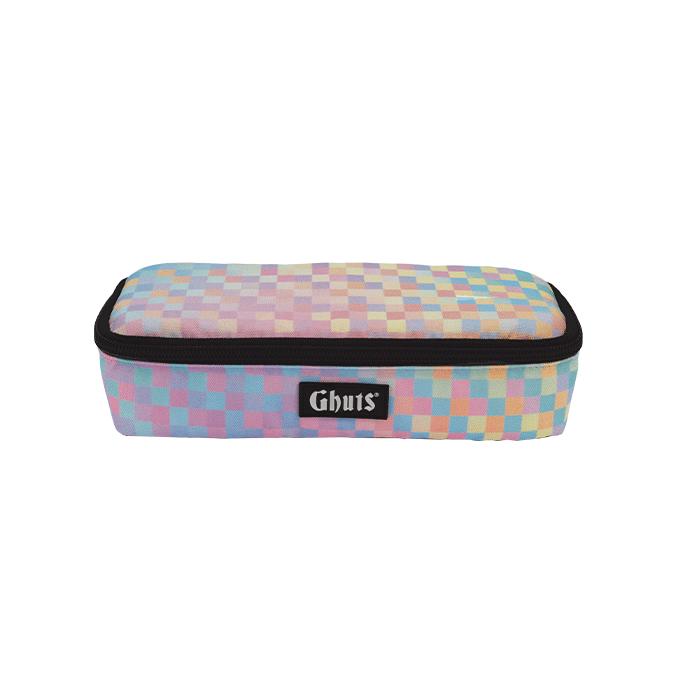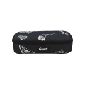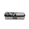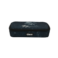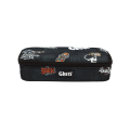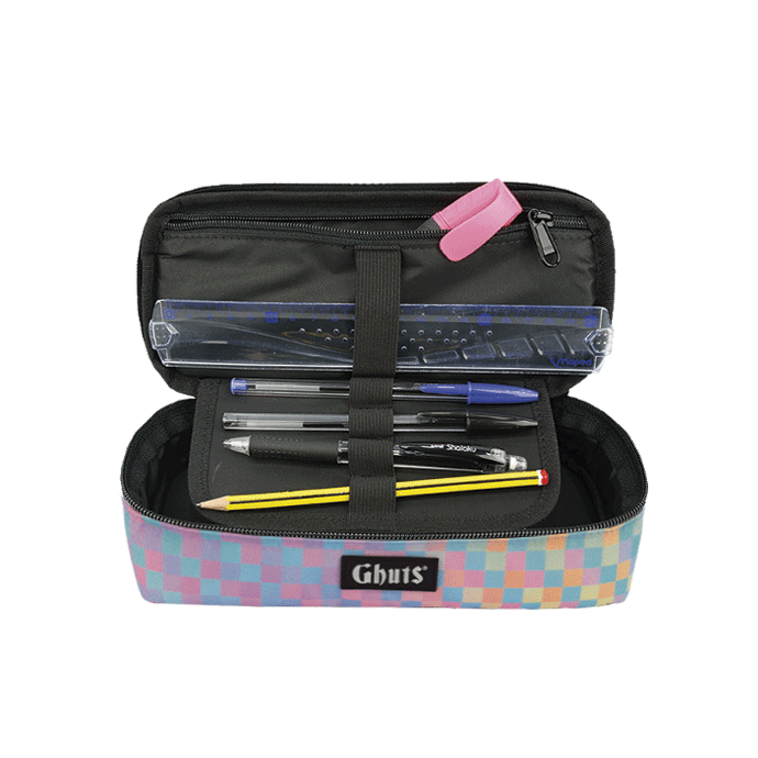 Con soporte para bolígrafos y otros materiales y bolsillo con cremallera interior.