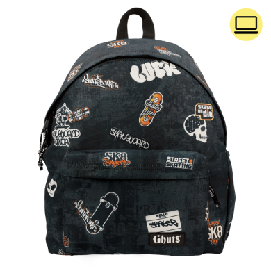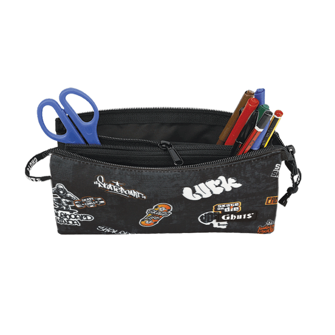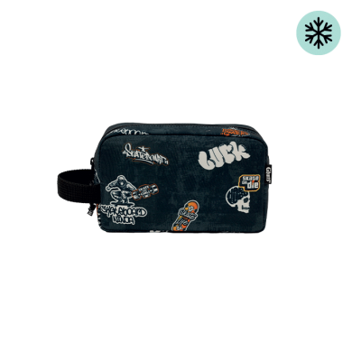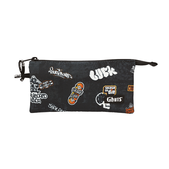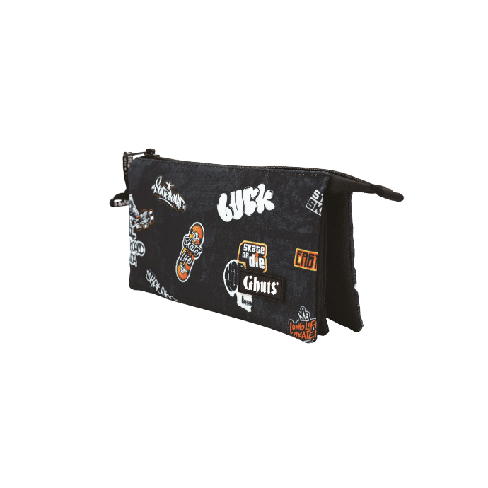Con tres compartimentos y bolsillo con cremallera interior.