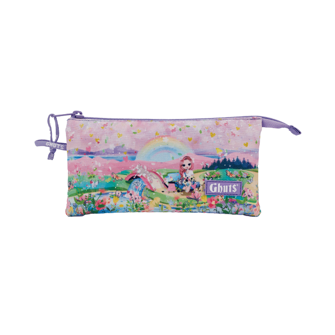 Con tres compartimentos y bolsillo con cremallera interior.