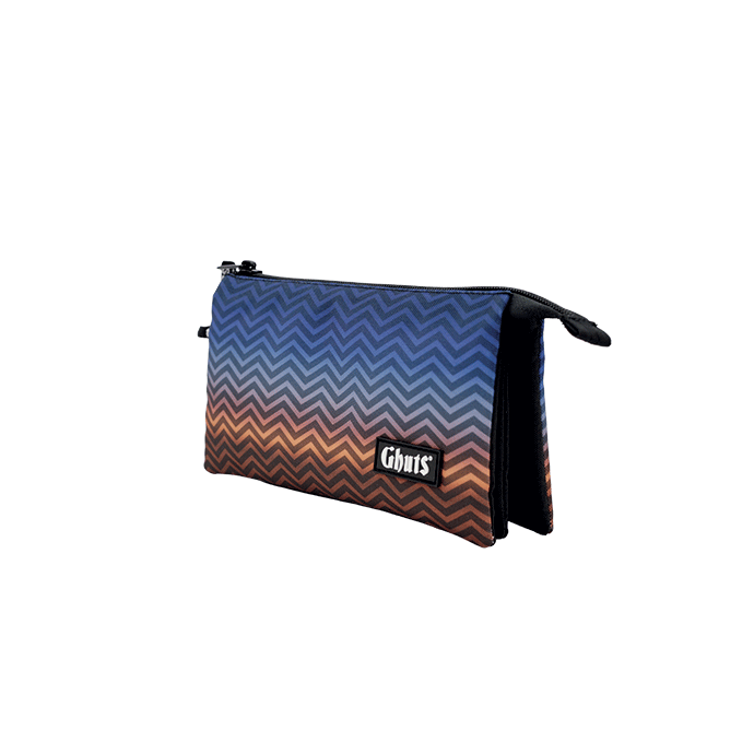 Con tres compartimentos y bolsillo con cremallera interior.