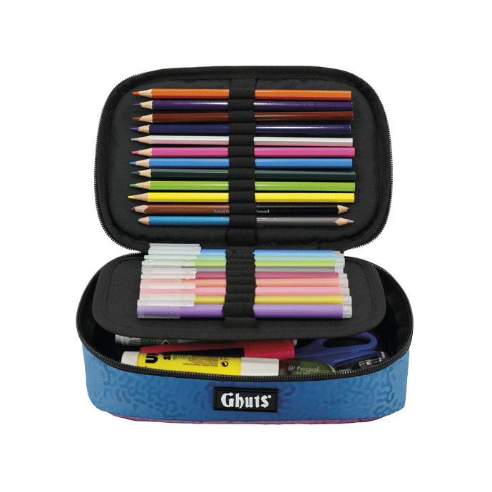 Com suporte para canetas e outros materiais.