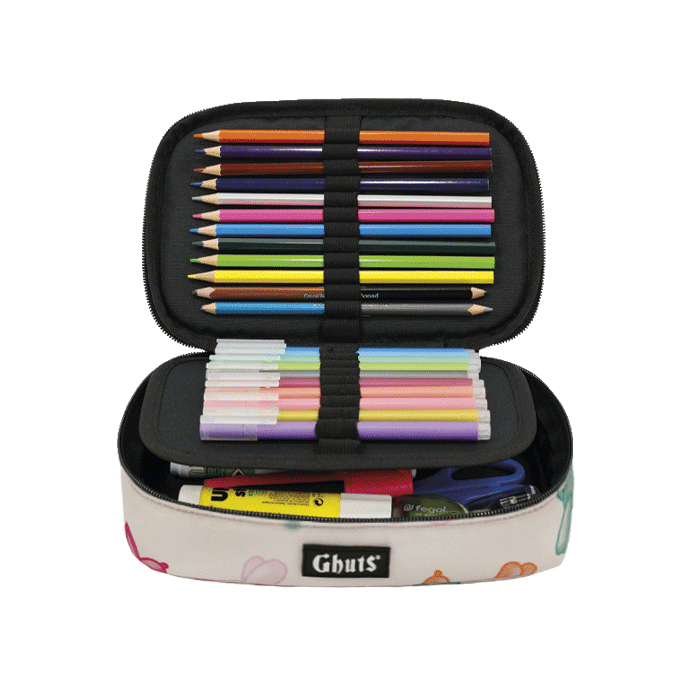 Com suporte para canetas e outros materiais.