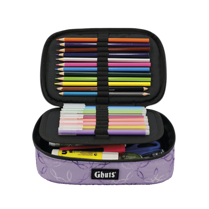 Com suporte para canetas e outros materiais.
