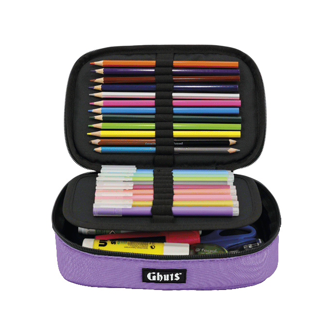 Com suporte para canetas e outros materiais.