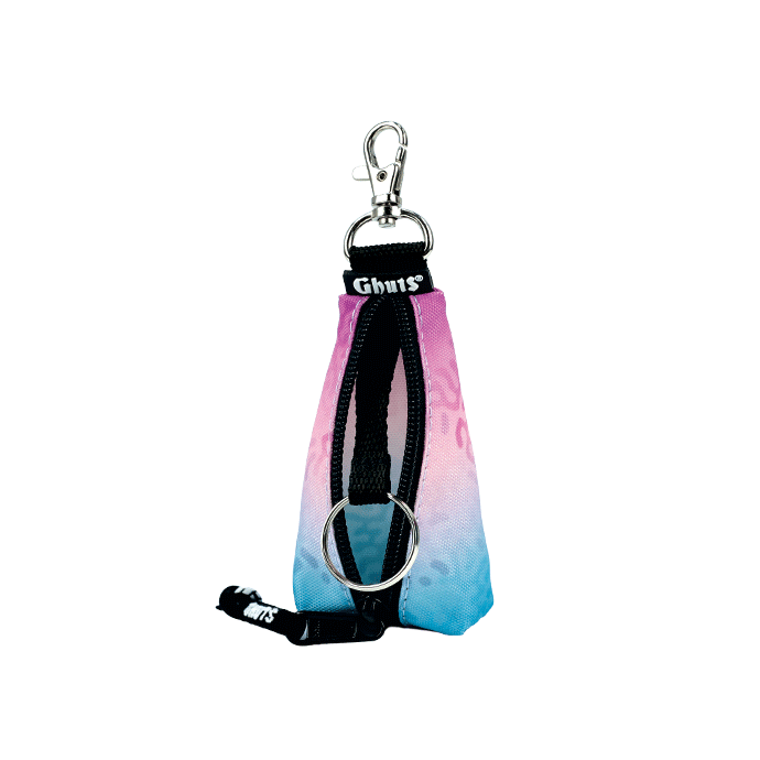 Porta chaves com mosquetão exterior. No interior, presilha com argola para prender chaves de forma prática.