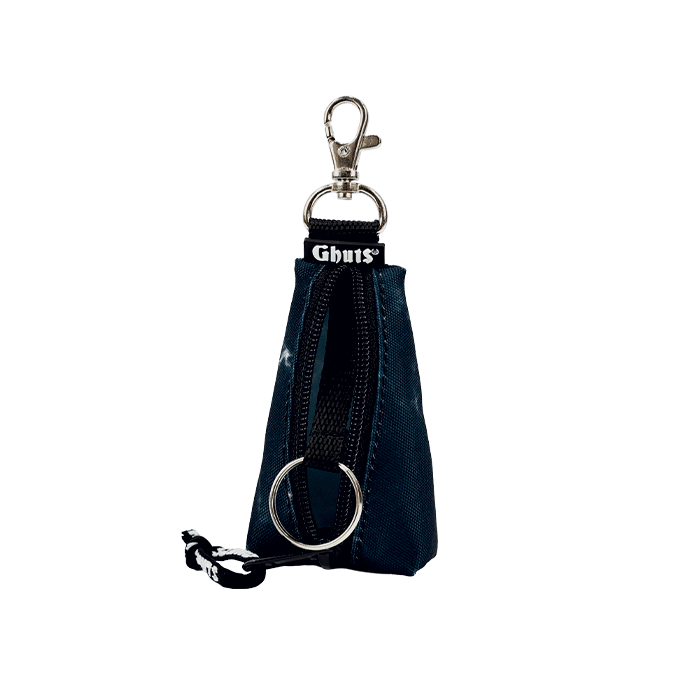 Porta chaves com mosquetão exterior. No interior, presilha com argola para prender chaves de forma prática.