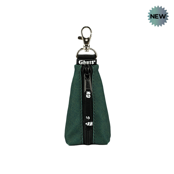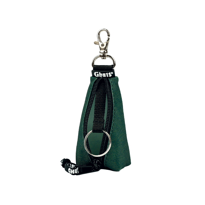 Porta chaves com mosquetão exterior. No interior, presilha com argola para prender chaves de forma prática.