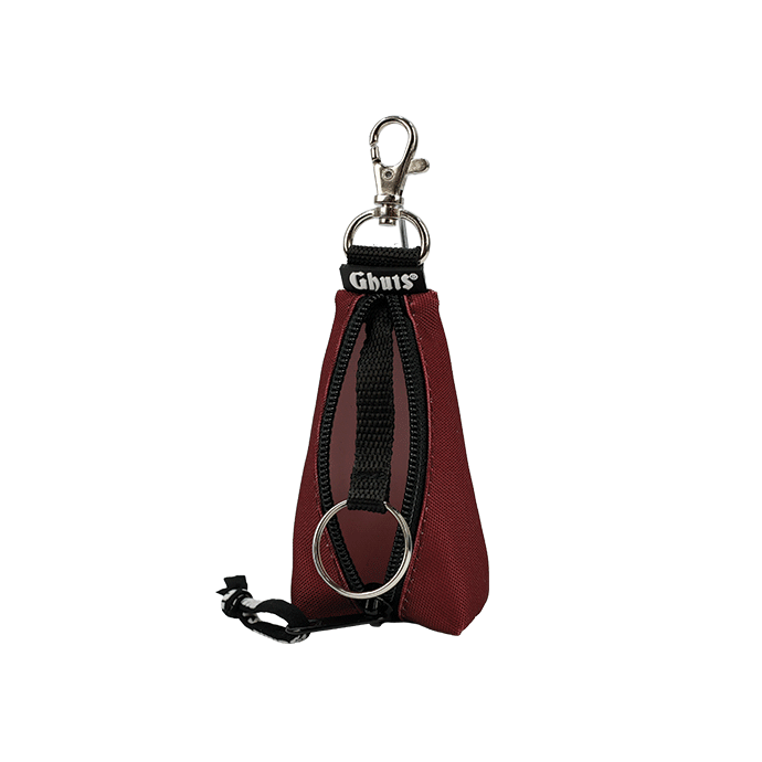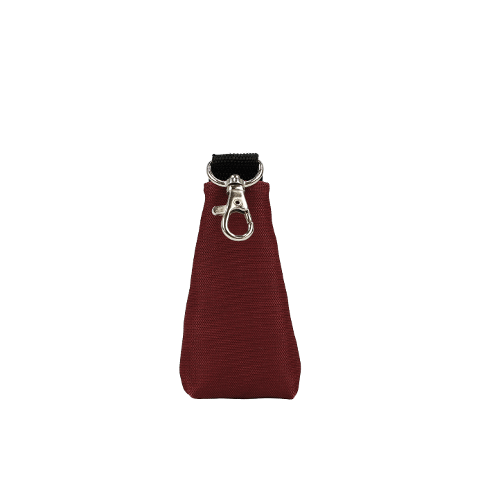 Porta chaves com mosquetão exterior. No interior, presilha com argola para prender chaves de forma prática.